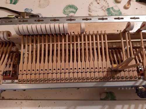 Per il Silent su Pf a Coda viene installato un dispositivo con doppia regolazione dello scappamento, che consente al pianoforte di funzionare bene con il silent inserito, senza pero’ alterare la regolazione degli scappamenti che opera in modo ottimale quando il silent non è inserito.