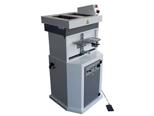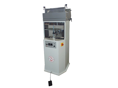 Le presse pneumatiche Fenix per suole ad un posto possiedono una campana di tipo alta, adatta a tutte le altezze di tacco e consentono di cambiare rapidamente la membrana in soli 30 secondi.