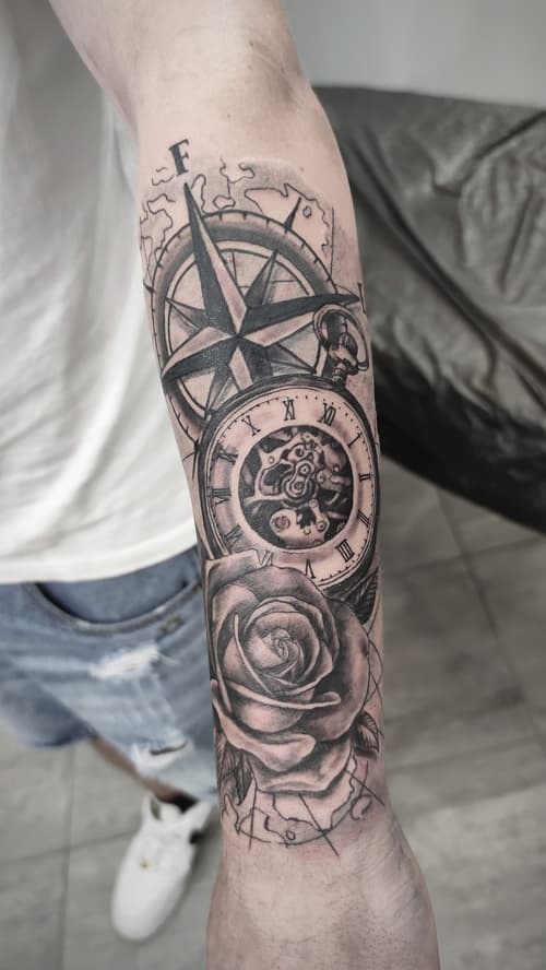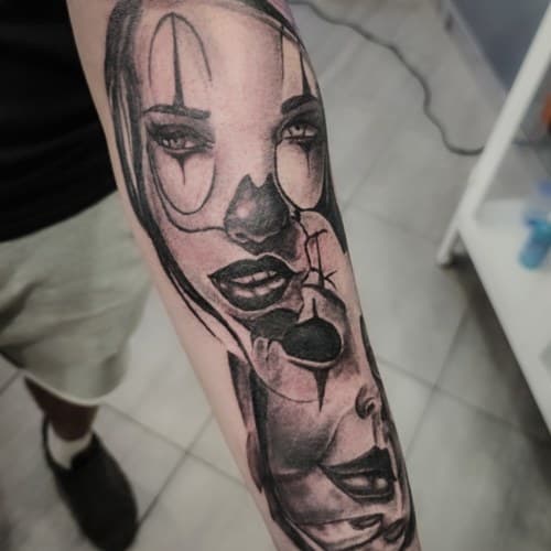 Stefano è specializzato nel tatuaggio realistico in bianco e nero, vere e proprie composizioni con immagini che rispecchiano la realtà, come una fotografia.